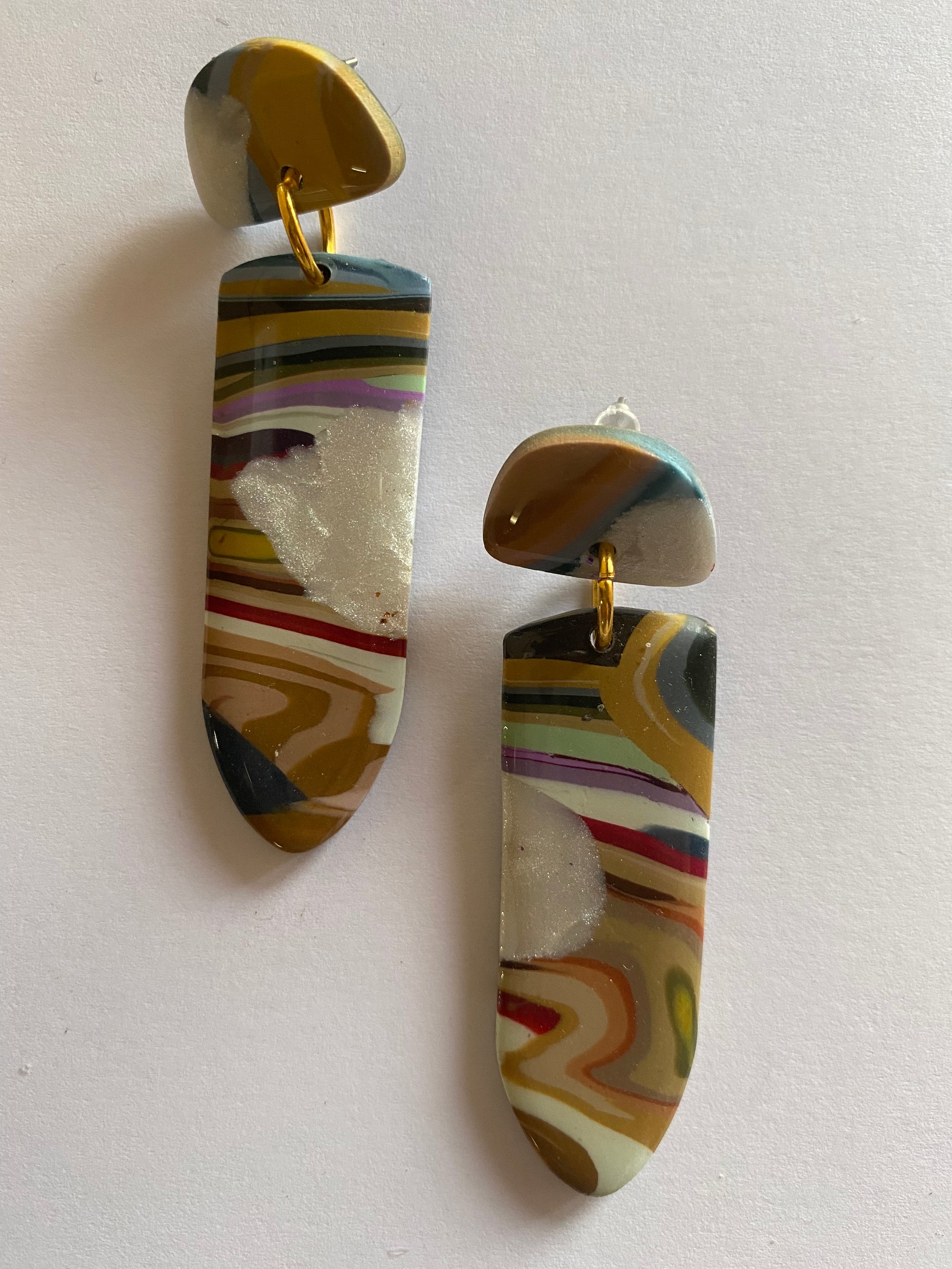 These earrings are made with polymer clay with thin layer of resin. Extremely light weight and great way of self expression. All earrings are made by hand in my Las Vegas studio. With that being said please note earrings may have a slight variance in color compared to picture.