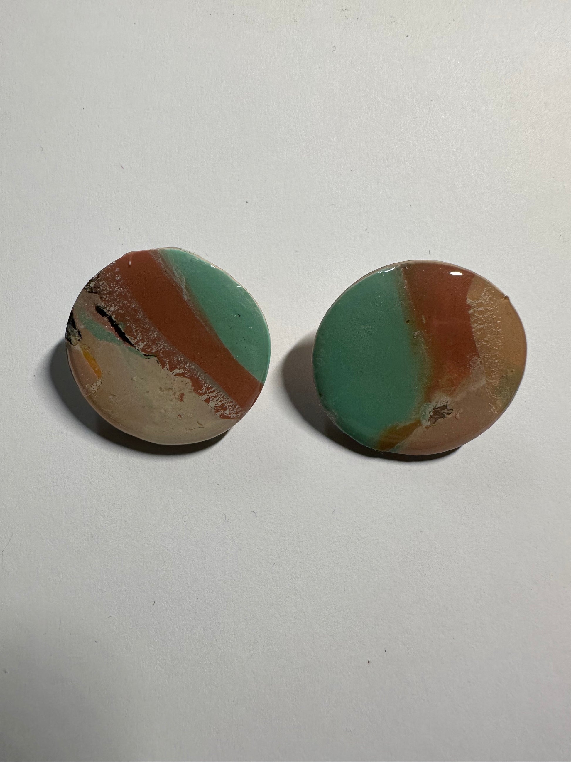 These earrings are made with polymer clay with thin layer of resin. Extremely light weight and great way of self expression. All earrings are made by hand in my Las Vegas studio. With that being said please note earrings may have a slight variance in color compared to picture.