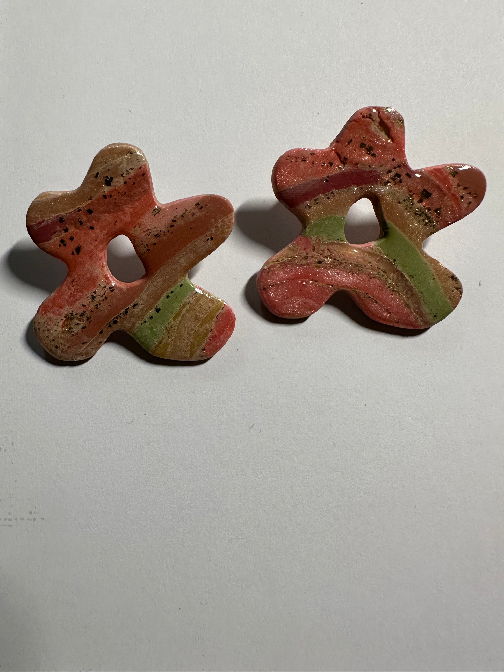 Please do not wear in water or get wet as it could jeopardize the longevity of your earrings. Polymer clay is durable but try not to bend. To clean use a damp cloth. Store in a safe place to not bend or scratch.